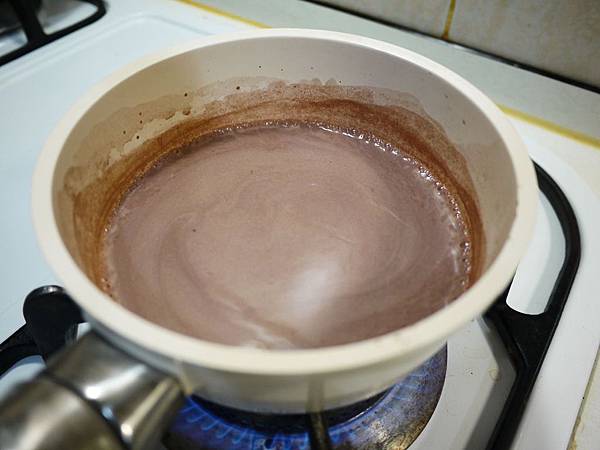 煮好後很稠,像在歐洲優質巧克力店端出來的那種稠厚到筷子擺上去可以好幾秒不倒,一喝下去會甜到螞蟻放鞭炮的感覺。我忍不住懷疑朋友說的牛奶份量是不是有誤,還跑去確認了一下,本來想再倒多點牛奶下去,遲疑了一下,還是先喝了一口。